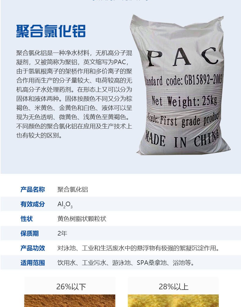 利用雙電層聚合氯化鋁加速沉淀 高分子物質(zhì),在吸附架橋形成的更長的污染物鏈條物質(zhì),利于沉淀,這類化學(xué)藥劑的吸附架橋作用對(duì)水中的細(xì)微懸浮顆粒進(jìn)一步捕捉,無機(jī)鹽混凝劑聚合氯化鋁PAC對(duì)水中的膠體和細(xì)微的懸浮顆粒進(jìn)行有效的去除。